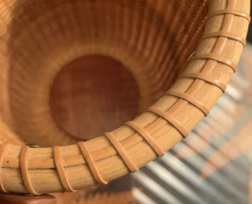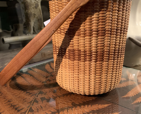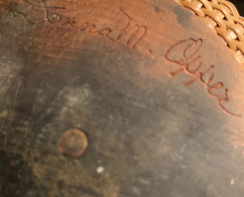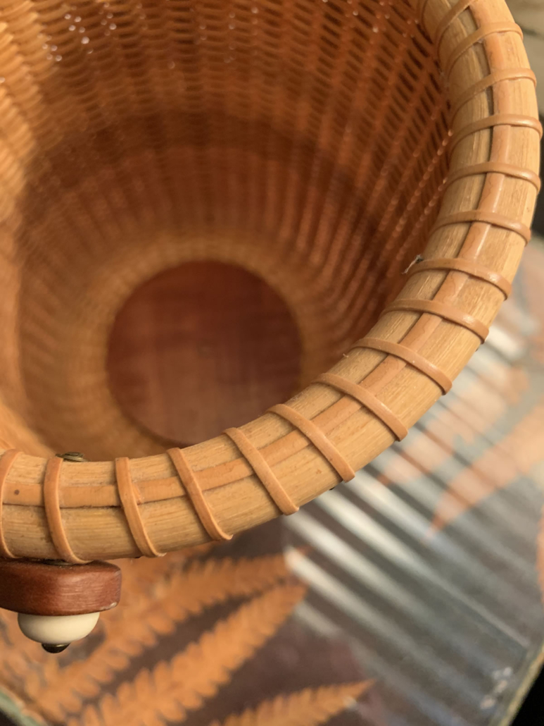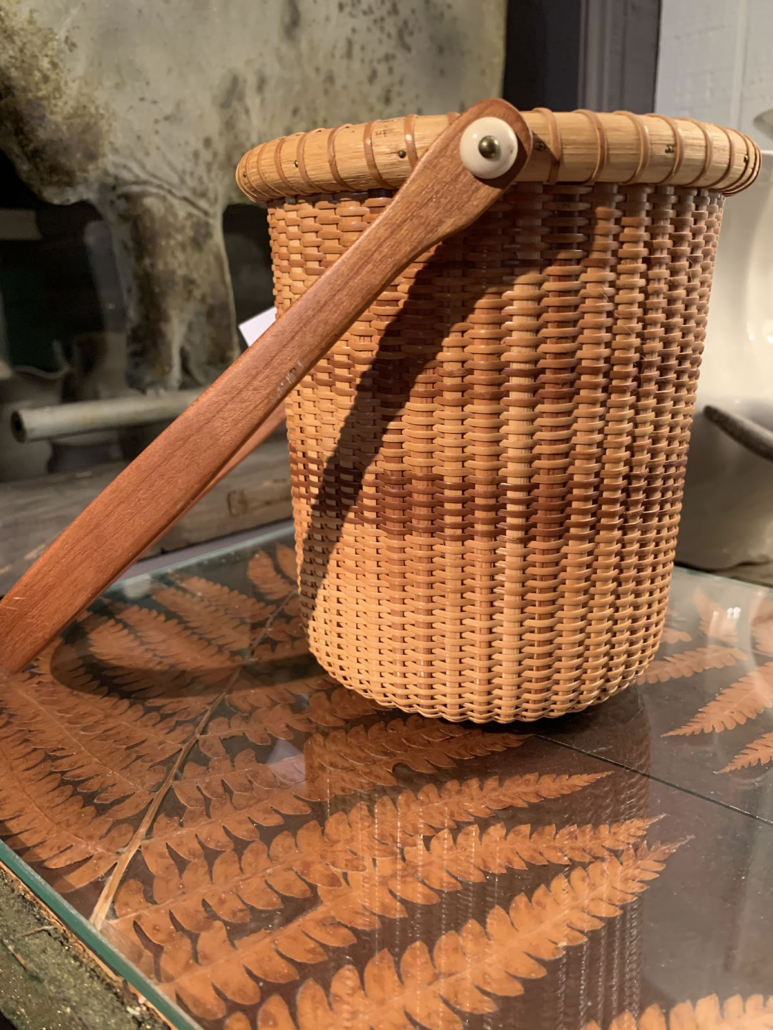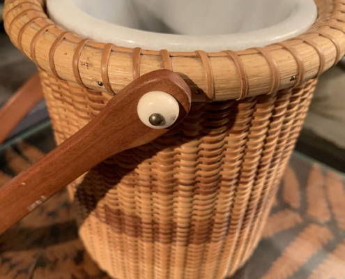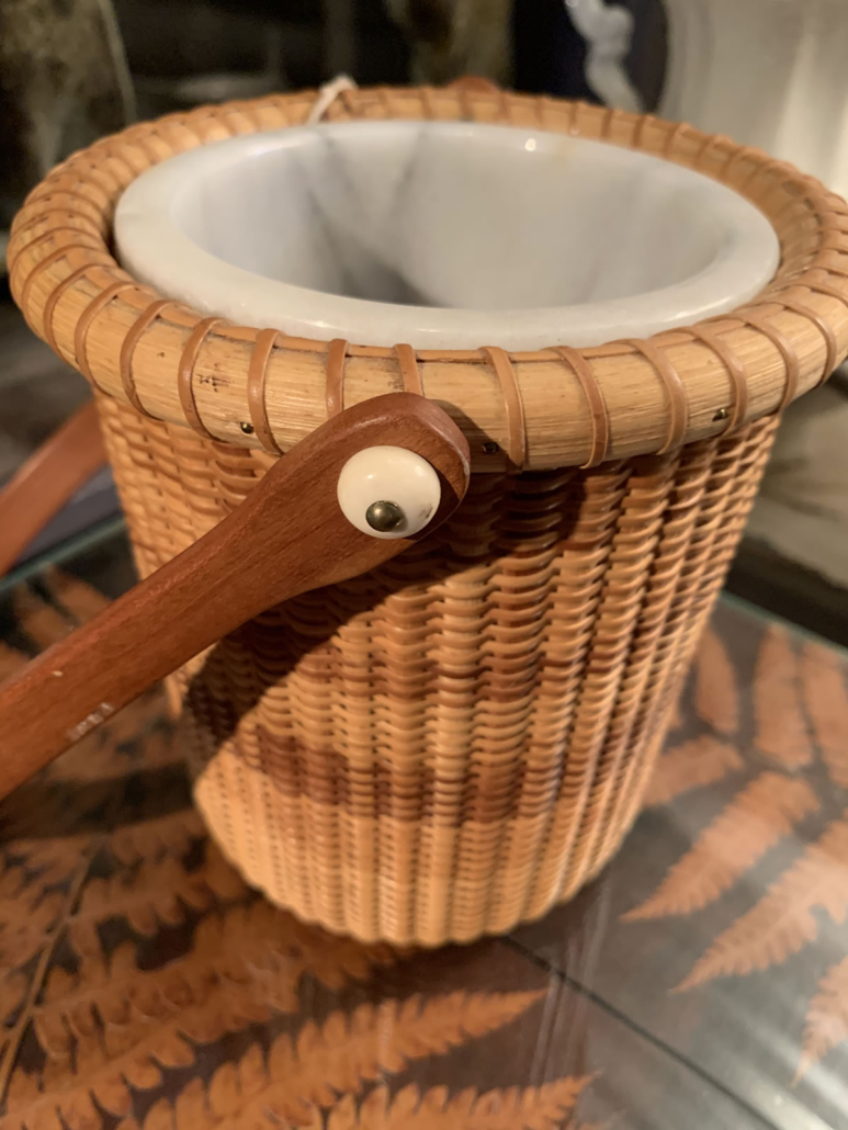 Made by seafaring sailors for centuries, this tradition of basketry continues on the famous isle off the coast of Massachusetts. This fine example, exquisitely crafted by Donna M. Opper, most likely in the 80’s boasts a second, unexpected feature: a marble liner for use with flowers. 7 in. high, 6 in. in diameter. $265