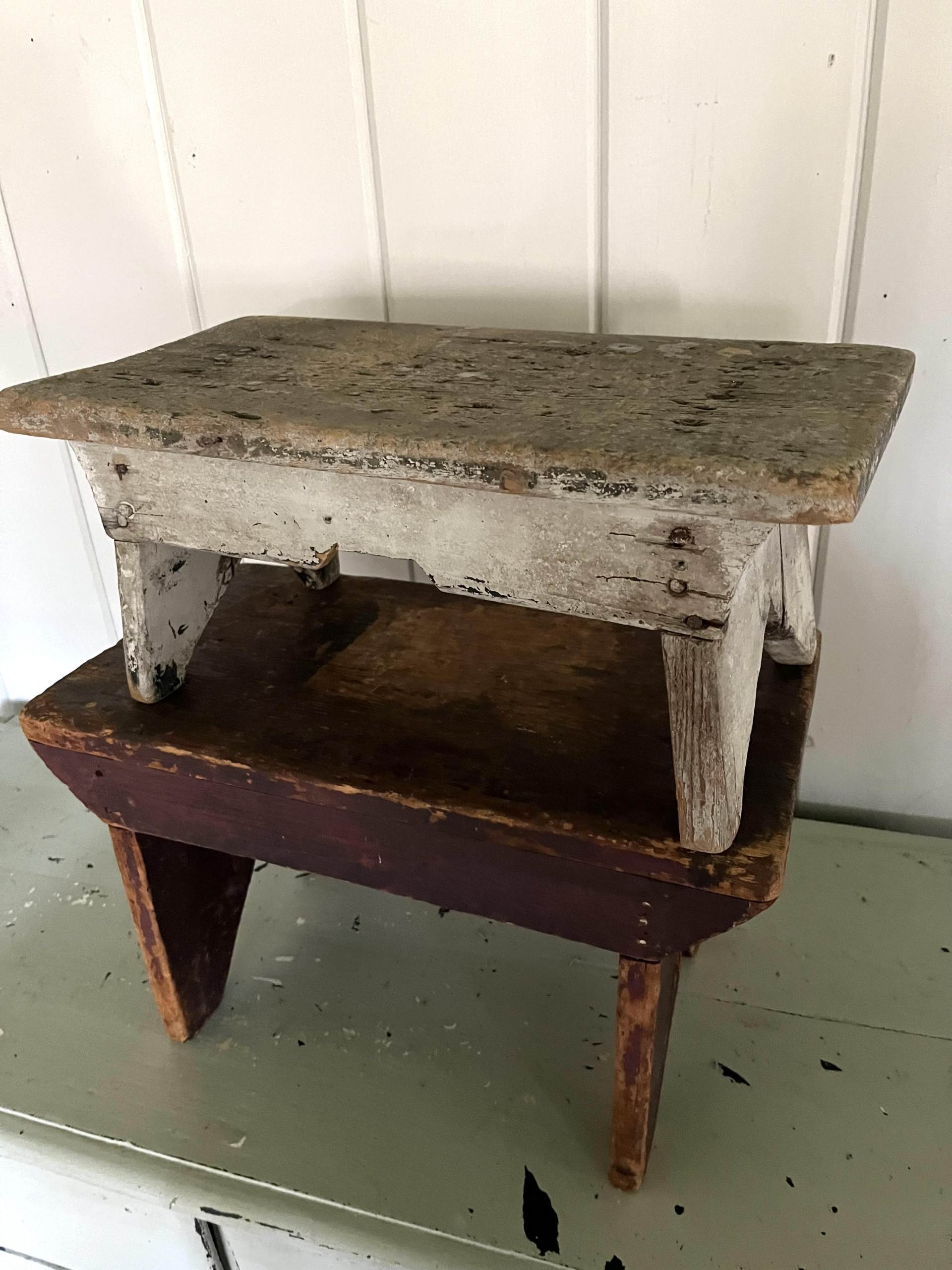 A pair of cute, quintessential country footstools with great color and patina.